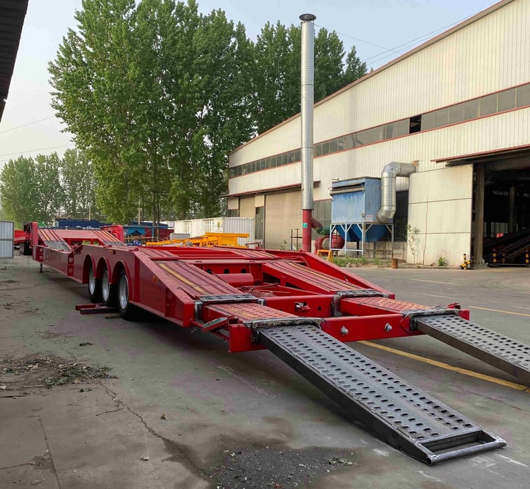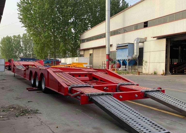 Multi-axle low-bed semi-trailers, suitable for heavy-duty and vehicle transportation.