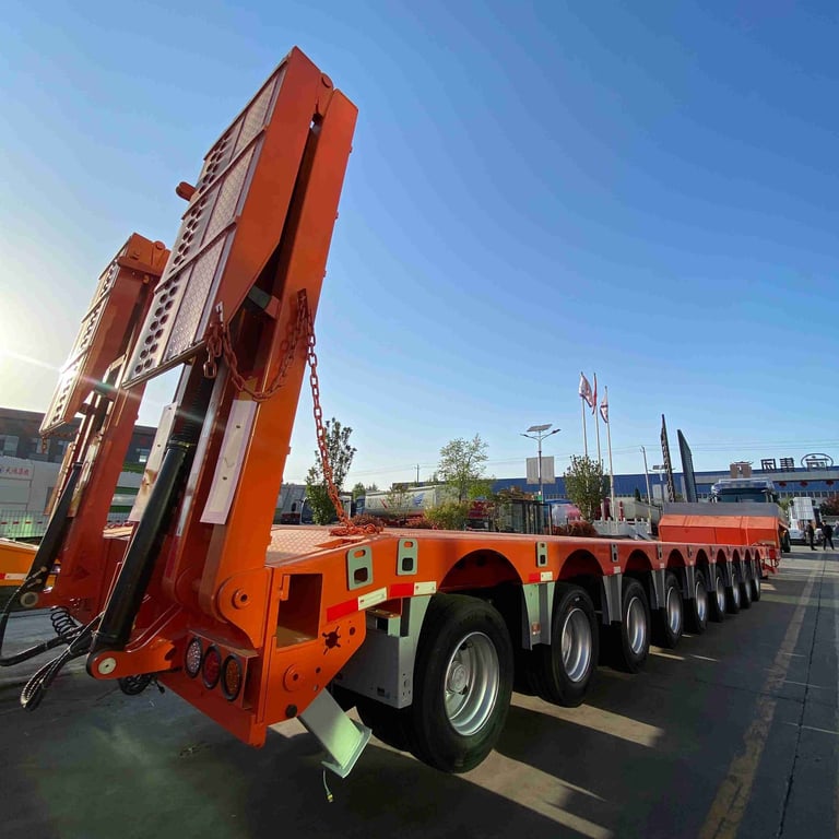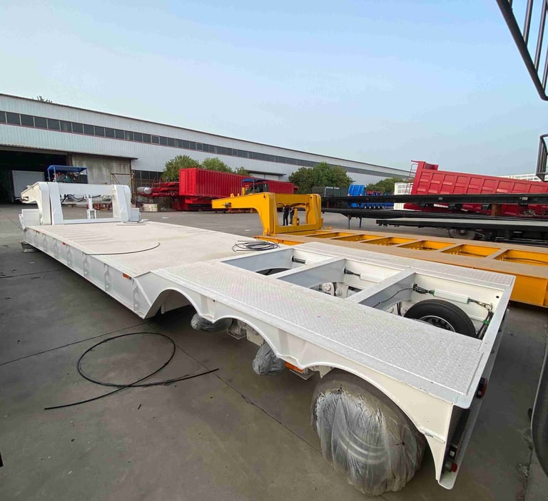 A variety of semi-trailers including low-bed and hydraulic ladder models meet engineering machinery transportation needs with sturdy and reliable structures.
